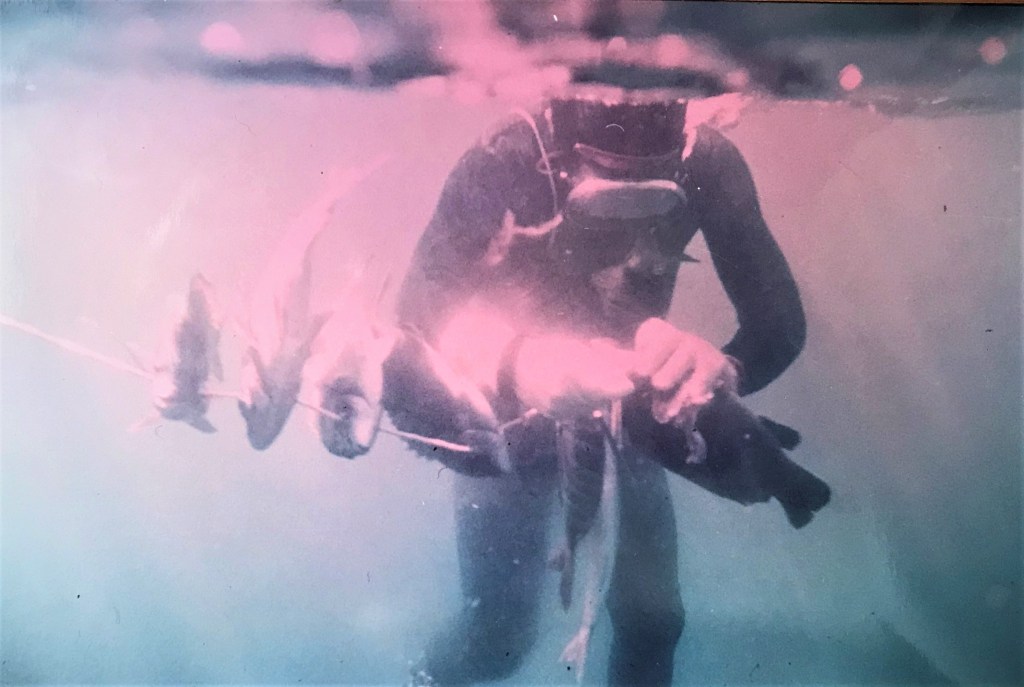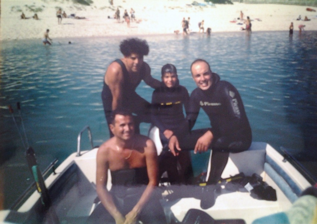 Iniciando a Luisito en la pesca submarina